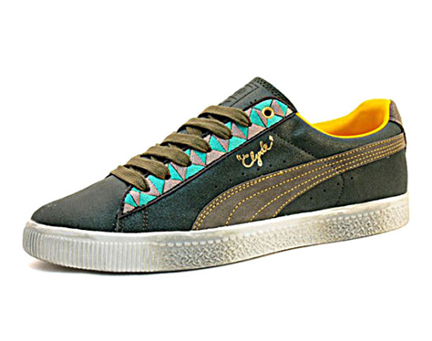 The Puma Clyde ventures on a Serengeti safari with this new pack inspired by the wilds of Africa. In black or jungle green each shoe features a woven geometric strip along the eyelets inspired by traditional Ghanaian Kente silk fabrics. The scuffed mid and out sole adds nicely to the rugged feel of the package.